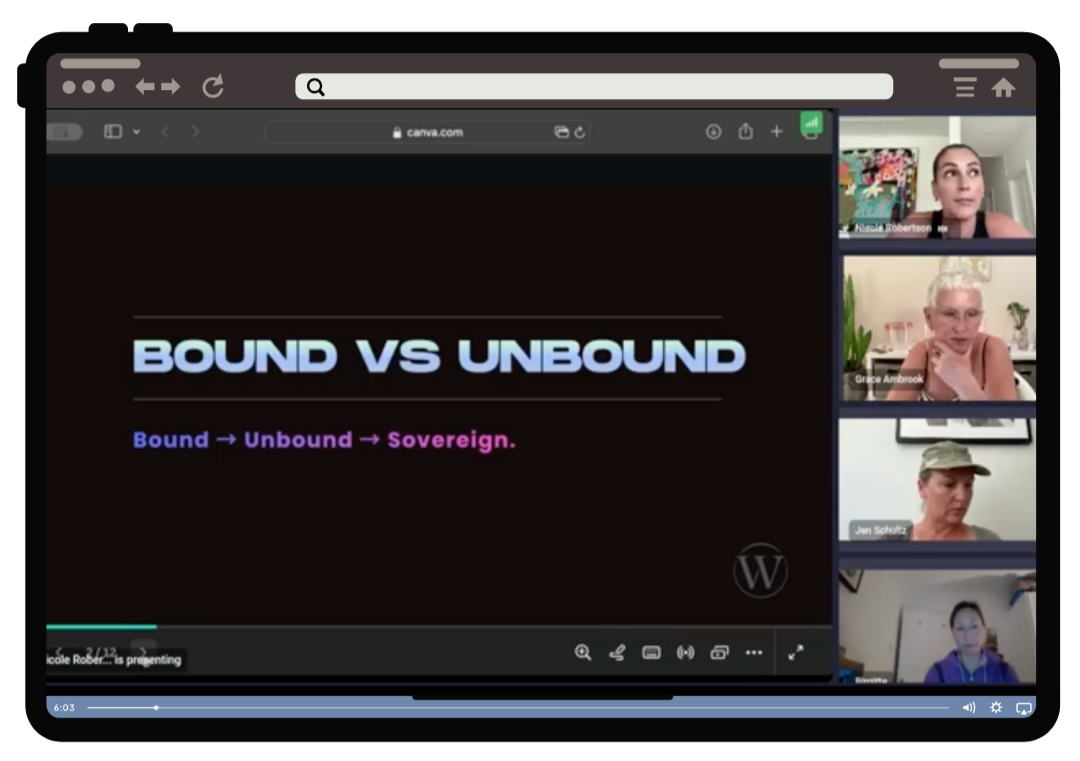 Ultra-focussed, high-value sessions with Women to Wealth Founders Nic & Jen, to help you understand the fundamentals of living Unbound.